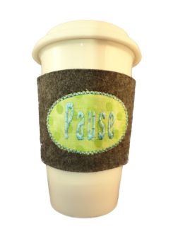 Diese handgefertigte Filzmansche mit bestickter Stoffapplication "Pause" können Sie selbstverständlich auch durch einen pesönlichen Text besticken lassen. Ich empfehle einen nicht zu langen Text, damit dieser eine Textbreite von 50 mm einhält. Die Filzmanschette schützt ihre Hand vor Wärme und hat eine gewisse Griffigkeit beim Festhalten des Bechers.